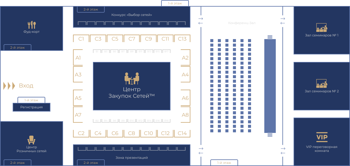 В этой зоне обладатели VIP-билетов смогут познакомиться с топ-менеджерами крупнейших розничных сетей, получить индивидуальную экспертную консультацию по своему бизнесу, передохнуть в комфортной обстановке в перерывах между переговорами